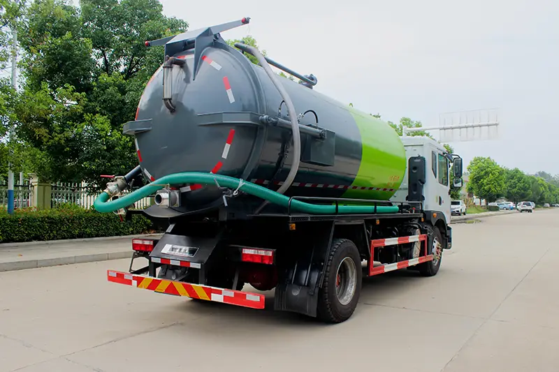 ② Kecekapan & Praktikal Tinggi: Tangki berkapasiti besar 12m³ boleh memenuhi keperluan sedutan dan pengangkutan kumbahan volum besar, mengurangkan bilangan perjalanan dan meningkatkan kecekapan kerja; pam vakum berkuasa tinggi dan reka bentuk struktur saintifik menjadikan sedutan dan pelepasan lancar, sesuai untuk pelbagai keadaan kerja yang keras, dan dapat menyelesaikan masalah pencemaran alam sekitar yang disebabkan oleh kumbahan dan enapcemar dengan berkesan.